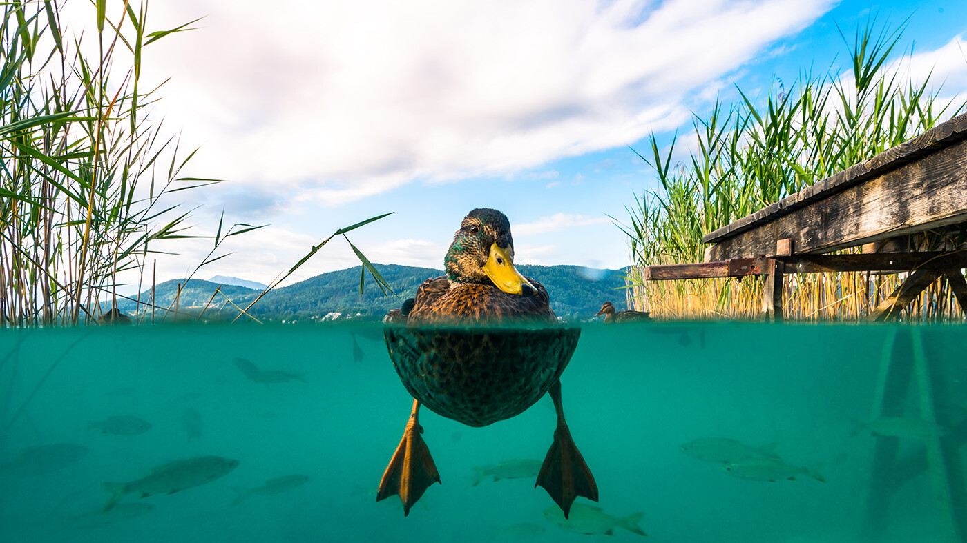 • Bei diesen Temperaturen will man einfach nur die Beine ins kühle Seewasser hängen lassen. Damit Enten dabei nicht bis auf die Daunen nass werden, tragen sie mit ihrem Schnabel eine wachsartige Fettschicht auf ihre sich überlappenden Deckfedern auf.